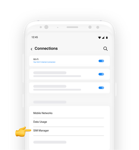 Open "Settings", go to "Connections" and then go to the SIM card Manager